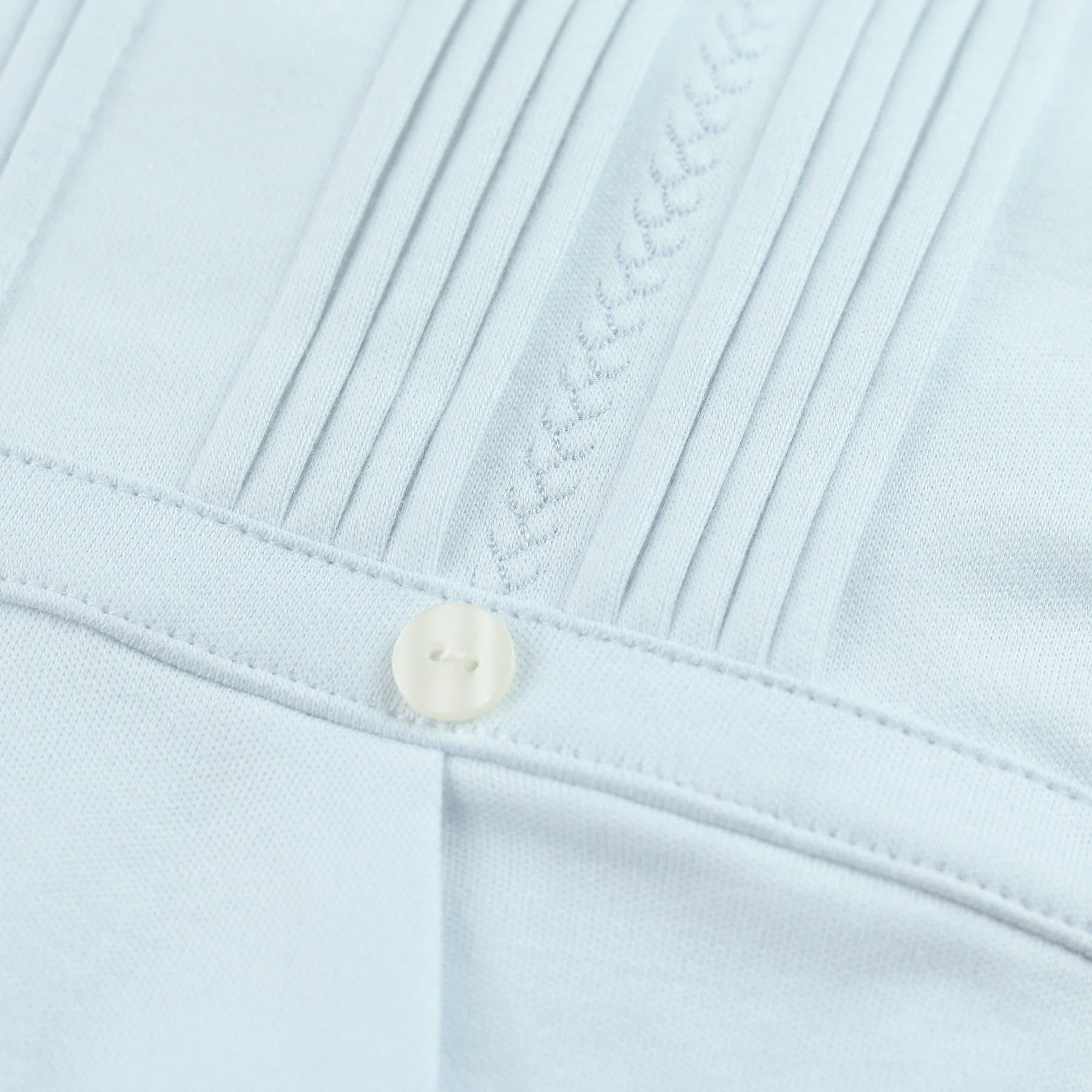 - Pintuck pleats and feather stitch detailing